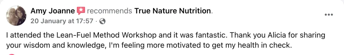 Working with Alicia has been an absolute joy. She meets me exactly where I’m at. Her coaching is flexible, supportive, and perfectly structured without feeling rigid. I feel informed, confident about what works for my body in my 40s, and able to build strength and wellbeing without guilt or restriction. I’d recommend her to any woman 40+ wanting knowledgeable, kind support.